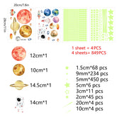 849Pcs Glow in The Dark Stars Wall Stickers Glowing Stars for Ceiling Luminous Planet Spaceship Wall Decals DIY Kids Room Decor