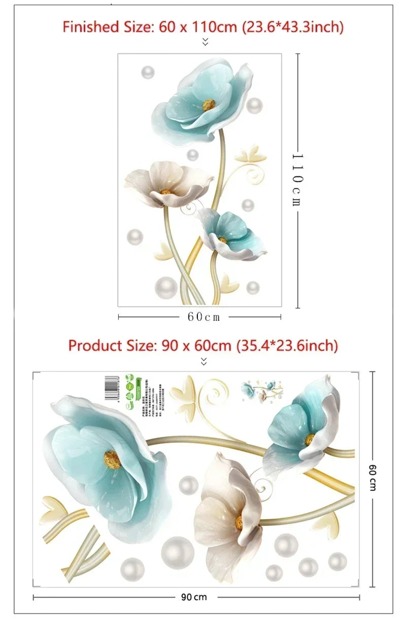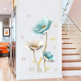 Blue Lotus Geometric Forest Wall Stickers Large DIY Decoration Living Room Home Decor Flowers Wall Decals Bedroom Art Design